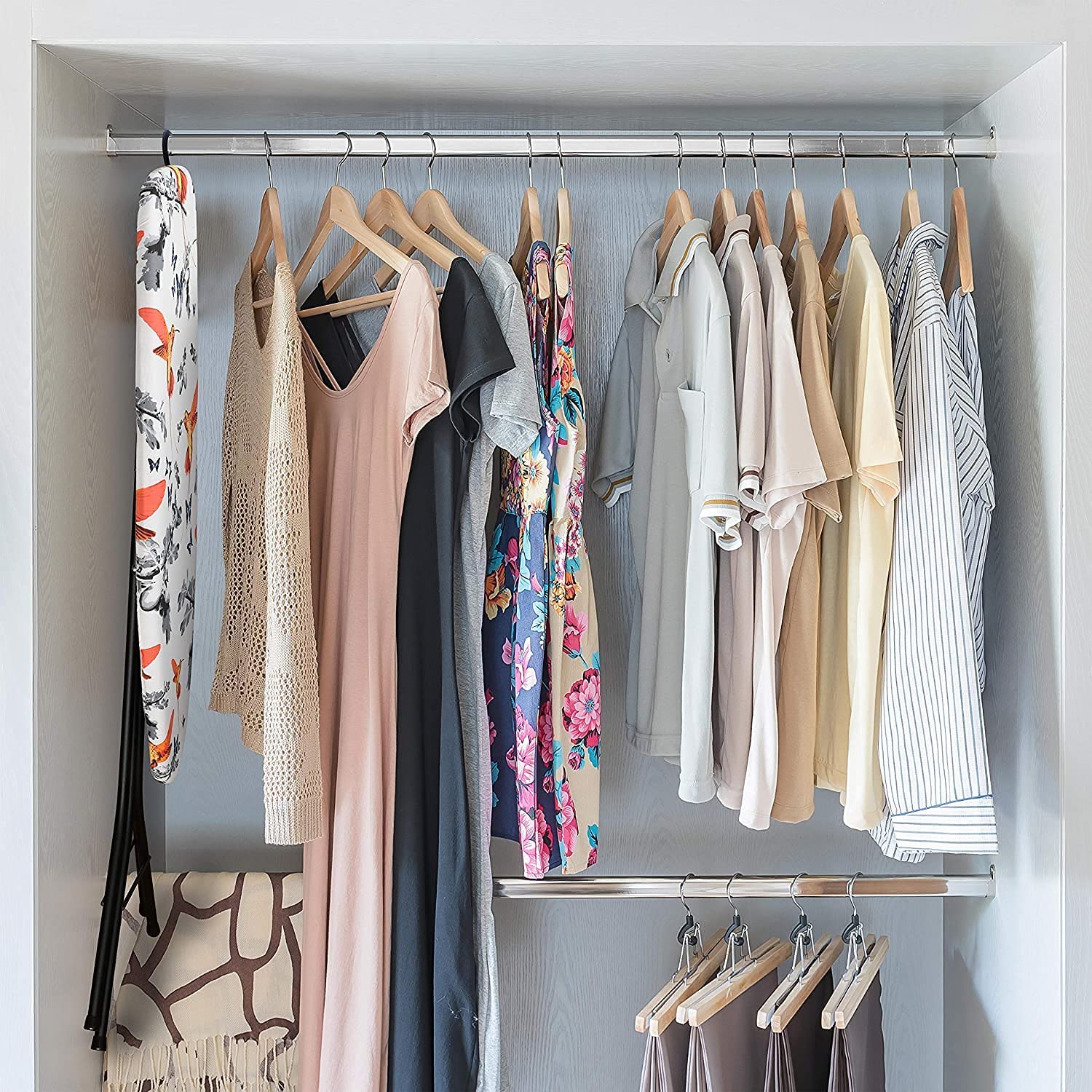 - STORAGE HANGER - LIGHTWEIGHT, Special designed hanger to hang the ironing board in closet, lightweight easy to carry and take wherever needed, it folds almost flat to save storage space, it’s the perfect size for storage in your bedroom closet, a laundry room, or a dorm.